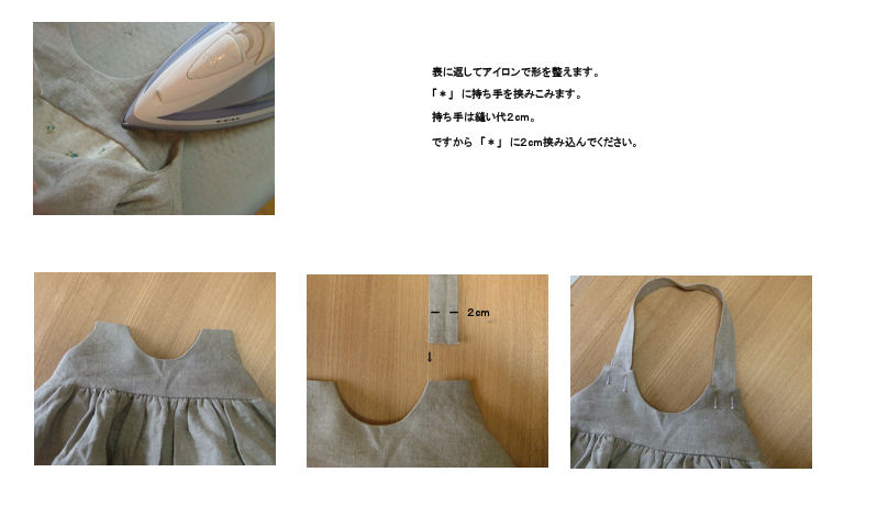 ⑤ 外袋の④同様に( * )を折りアイロンで押えておいてください。