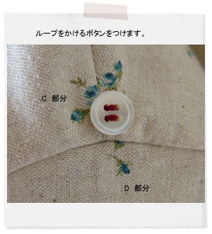 ⑤ C 部分の脇にボタンをつけてループをひっかけるようにします。