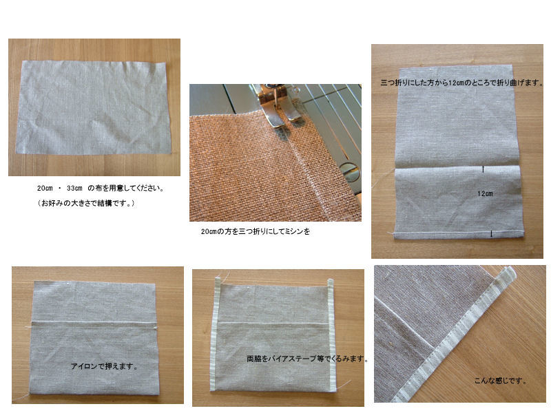 ①20㎝ × 33㎝の布を用意してください。(サイズはお好みでどうぞ)