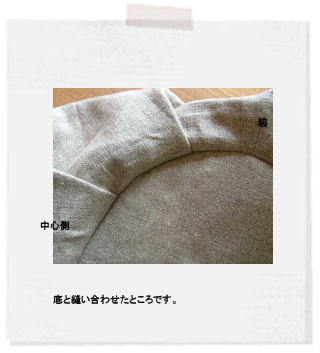 プラスティックの底板を入れるために一部分は縫わずに