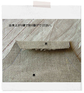 ③12cmのところで折り曲げ、両脇をバイアステープ・共布等でくるみます。
