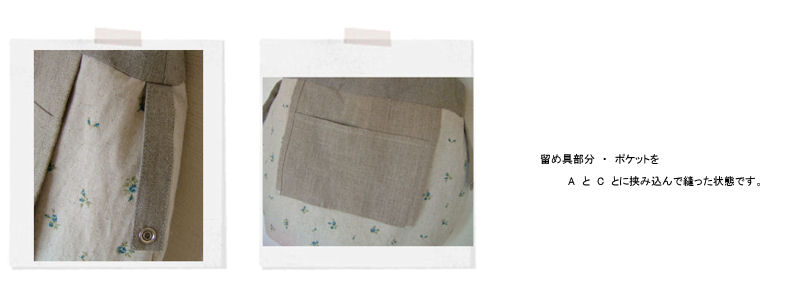 ① C のどちらかにポケットを仮止めします。